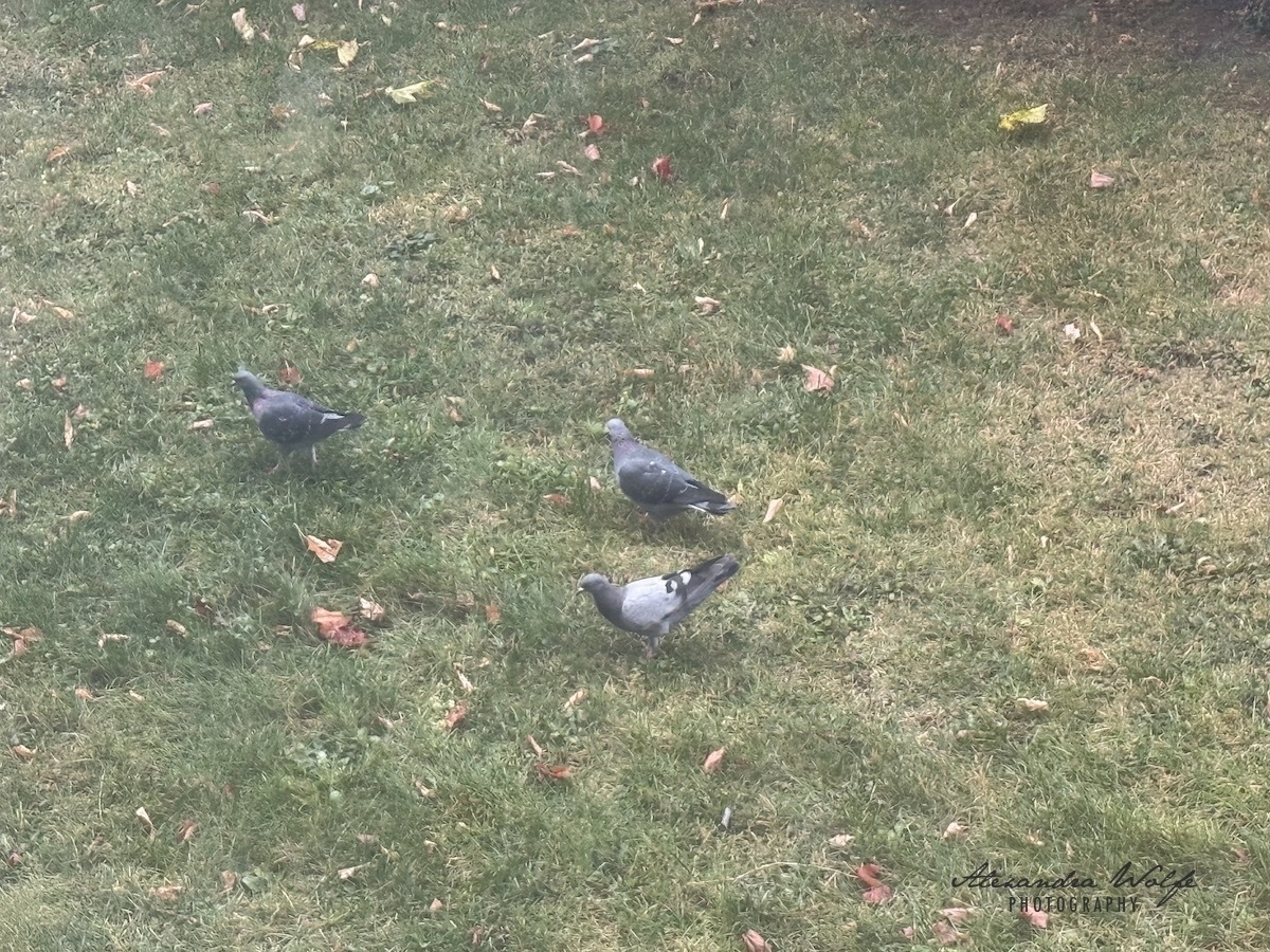 Three squirrels, 20+ sparrows (it was impossible to have accurate numbers they moved so quickly) plus six plump pigeons and two very noisy crows who kept bullying the other birds.